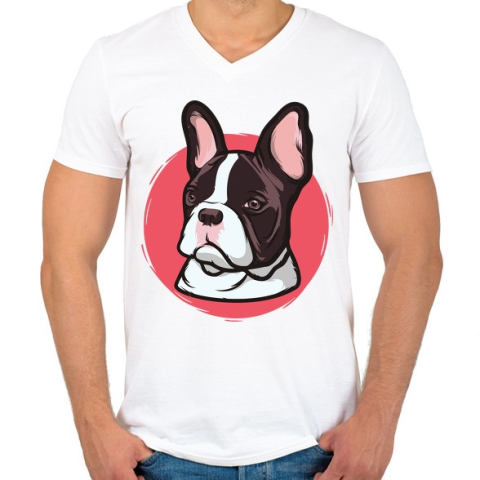 1 kép PRINTFASHION Francia bull - Férfi V-nyakú póló - Fehér