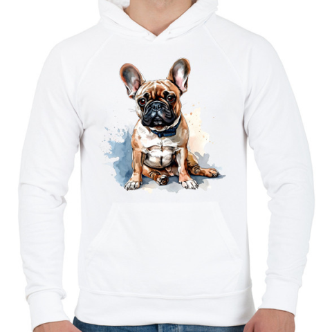 1 kép PRINTFASHION francia bulldog - Férfi kapucnis pulóver - Fehér