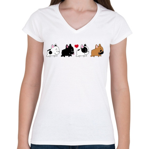 1 kép PRINTFASHION Francia bulldog kiskutyák - Női V-nyakú póló - Fehér
