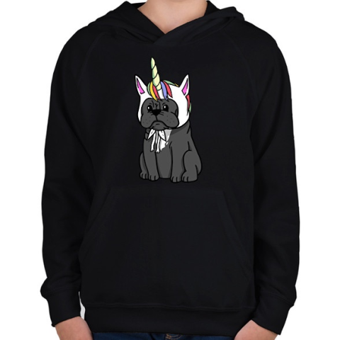 1 kép PRINTFASHION Francia bulldog unikornis - Gyerek kapucnis pulóver - Fekete