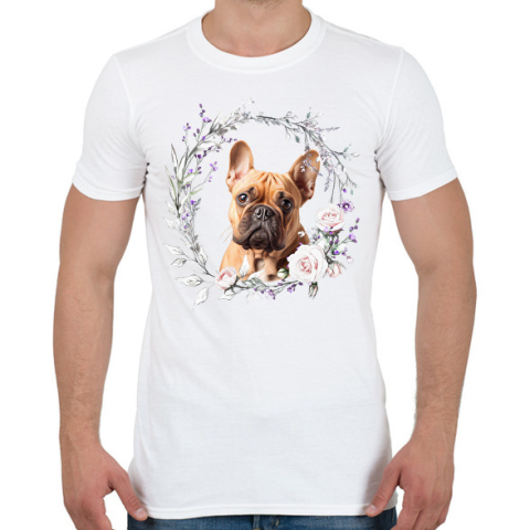 1 kép PRINTFASHION francia bulldog virágokkal - Férfi póló - Fehér