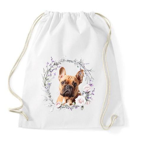 1 kép PRINTFASHION francia bulldog virágokkal - Sportzsák, Tornazsák - Fehér