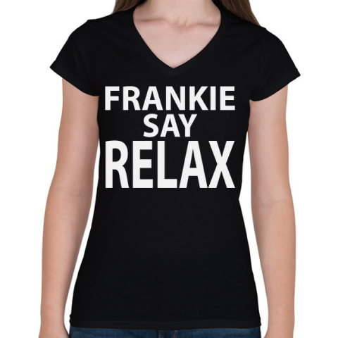 1 kép PRINTFASHION frankie-say-relax-white - Női V-nyakú póló - Fekete