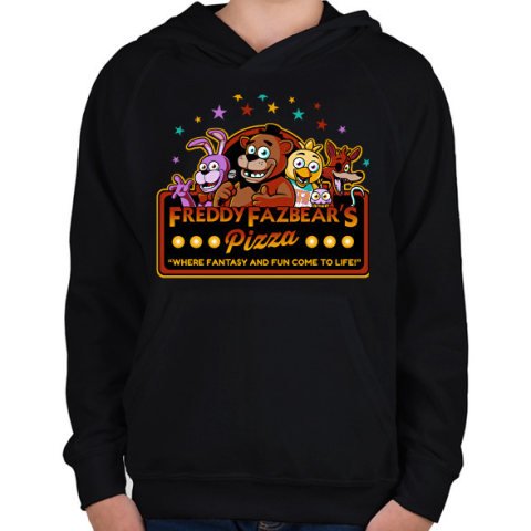 1 kép PRINTFASHION Freddy Fazbear's Pizzeria - Gyerek kapucnis pulóver - Fekete