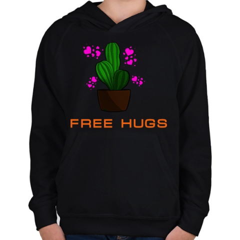 1 kép PRINTFASHION FREE HUGS - Gyerek kapucnis pulóver - Fekete