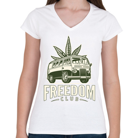 1 kép PRINTFASHION freedom club - weed and travel - Női V-nyakú póló - Fehér