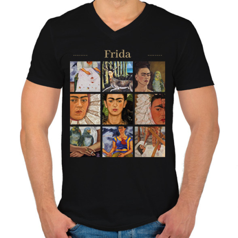1 kép PRINTFASHION Frida - részletek - Férfi V-nyakú póló - Fekete