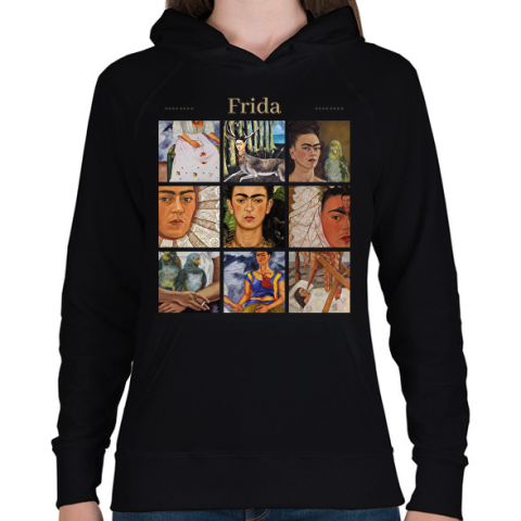 1 kép PRINTFASHION Frida - részletek - Női kapucnis pulóver - Fekete