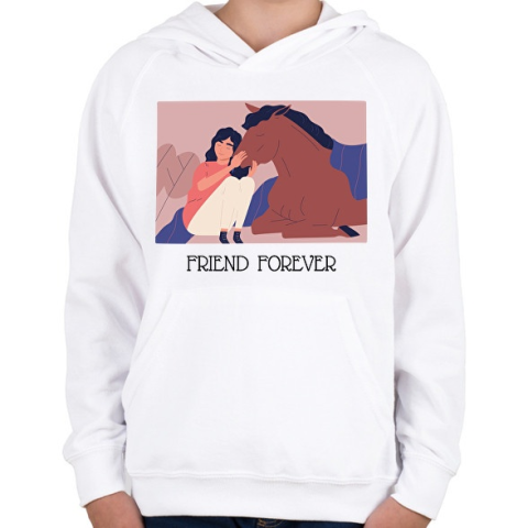 1 kép PRINTFASHION Friend forever - Lovas minta - Gyerek kapucnis pulóver - Fehér