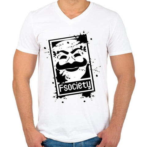 1 kép PRINTFASHION Fsociety2 - Férfi V-nyakú póló - Fehér