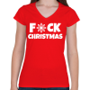 1 kép PRINTFASHION FUCK CHRISTMAS - Női V-nyakú póló - Piros