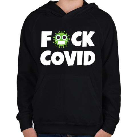 1 kép PRINTFASHION FUCK COVID 2 - Gyerek kapucnis pulóver - Fekete