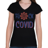 1 kép PRINTFASHION Fuck Covid - Női V-nyakú póló - Fekete