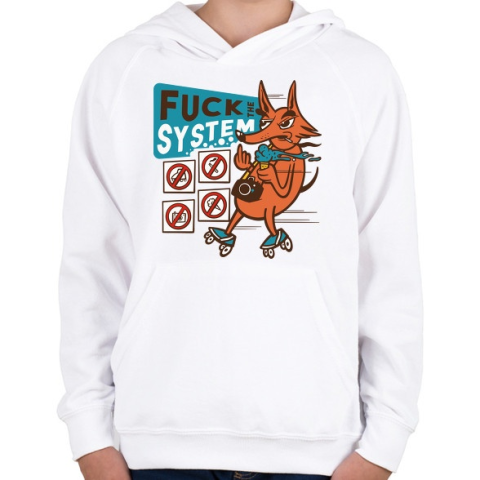 1 kép PRINTFASHION Fuck The System - Gyerek kapucnis pulóver - Fehér