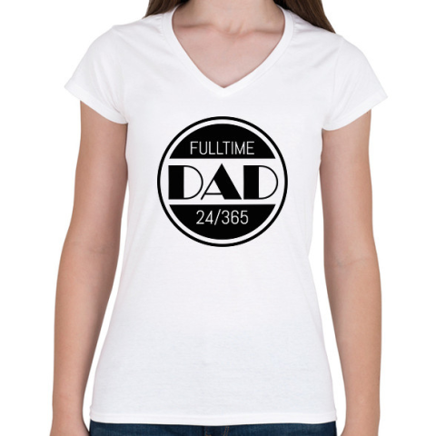 1 kép PRINTFASHION Fulltime DAD 24/365 - Női V-nyakú póló - Fehér