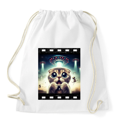 1 kép PRINTFASHION Fura cuki cica - UFÓ invázió - Sportzsák, Tornazsák - Fehér