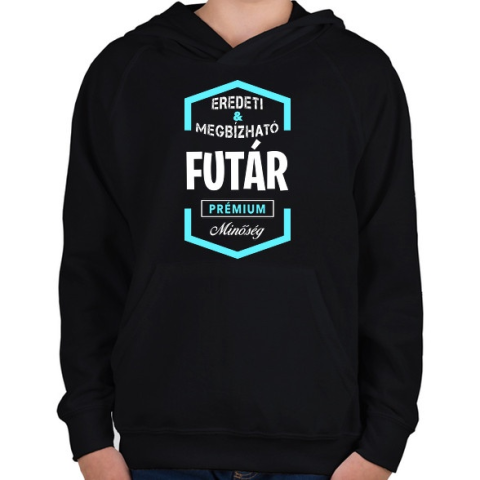 1 kép PRINTFASHION Futár prémium minőség - Gyerek kapucnis pulóver - Fekete