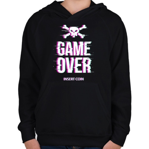 1 kép PRINTFASHION Game Over - Insert coin - Gyerek kapucnis pulóver - Fekete
