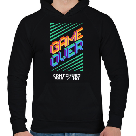 1 kép PRINTFASHION gameover - Férfi kapucnis pulóver - Fekete