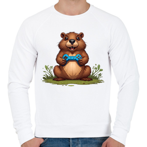 1 kép PRINTFASHION gamer bober - Férfi pulóver - Fehér