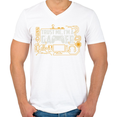 1 kép PRINTFASHION Gamer - Férfi V-nyakú póló - Fehér