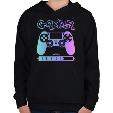 1 kép PRINTFASHION Gamer - Gyerek kapucnis pulóver - Fekete