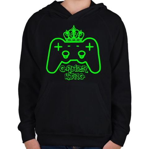 1 kép PRINTFASHION Gamer king - Gyerek kapucnis pulóver - Fekete