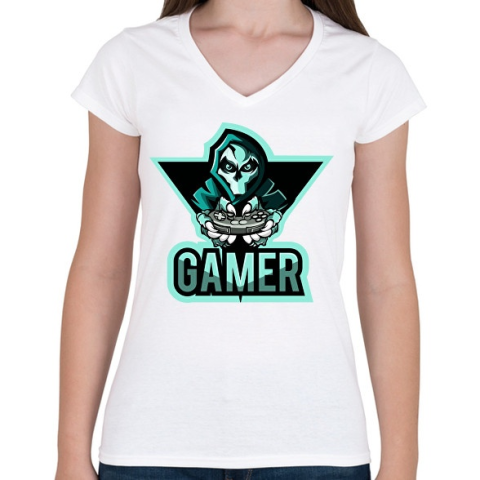 1 kép PRINTFASHION Gamer koponya - Női V-nyakú póló - Fehér