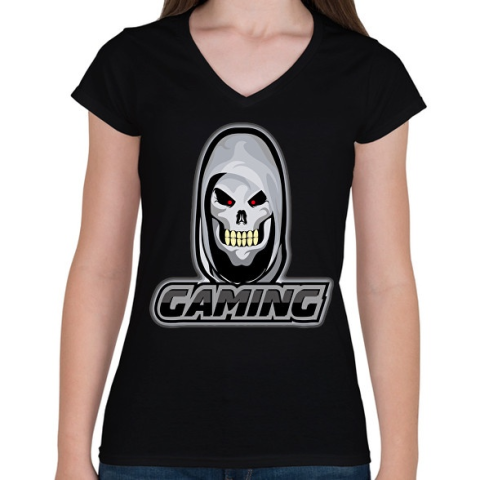 1 kép PRINTFASHION Gamer koponya - Női V-nyakú póló - Fekete