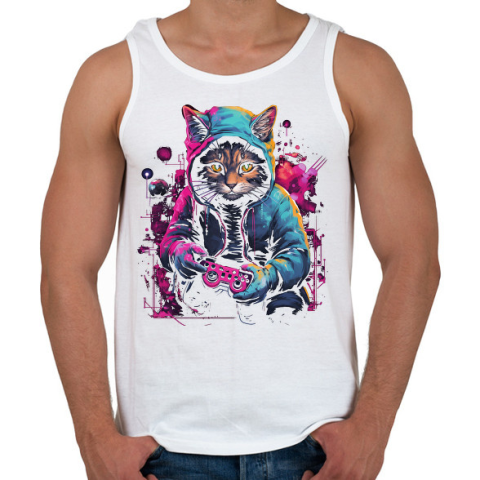 1 kép PRINTFASHION Gamer macska - Férfi atléta - Fehér