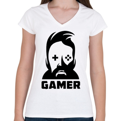 1 kép PRINTFASHION GAMER - Női V-nyakú póló - Fehér