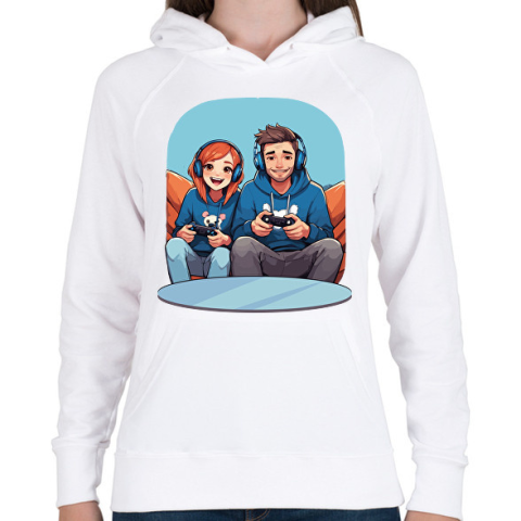 1 kép PRINTFASHION Gamer pár - Női kapucnis pulóver - Fehér