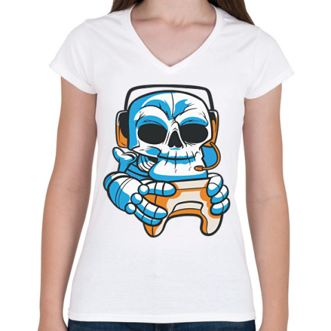 1 kép PRINTFASHION Gamer skull - koponya - Női V-nyakú póló - Fehér