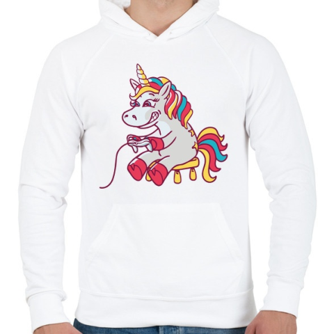 1 kép PRINTFASHION Gamer unikornis - Férfi kapucnis pulóver - Fehér