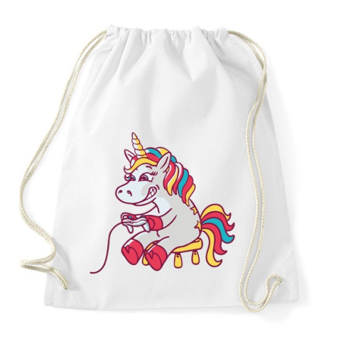 1 kép PRINTFASHION Gamer unikornis - Sportzsák, Tornazsák - Fehér