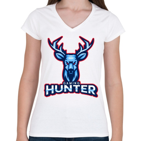 1 kép PRINTFASHION Gaming Hunter - Női V-nyakú póló - Fehér