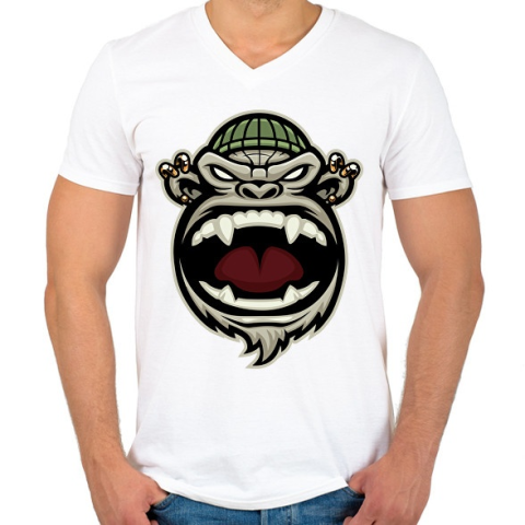 1 kép PRINTFASHION Gangsta Monkey - Férfi V-nyakú póló - Fehér