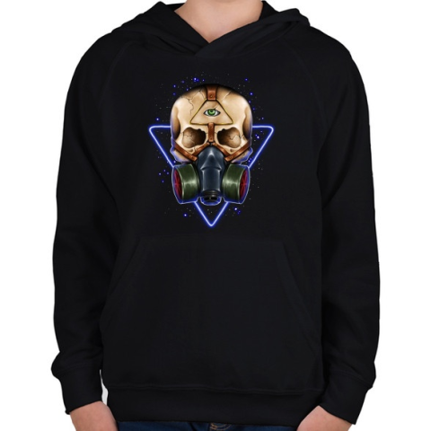 1 kép PRINTFASHION Gázmaszkos koponya - Gyerek kapucnis pulóver - Fekete