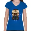 1 kép PRINTFASHION Gázmaszkos koponya - Női V-nyakú póló - Királykék