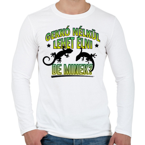 1 kép PRINTFASHION Gekkó nélkül élni - Férfi hosszú ujjú póló - Fehér