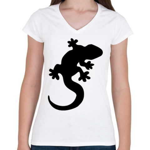 1 kép PRINTFASHION Gekkó sziluett - Női V-nyakú póló - Fehér
