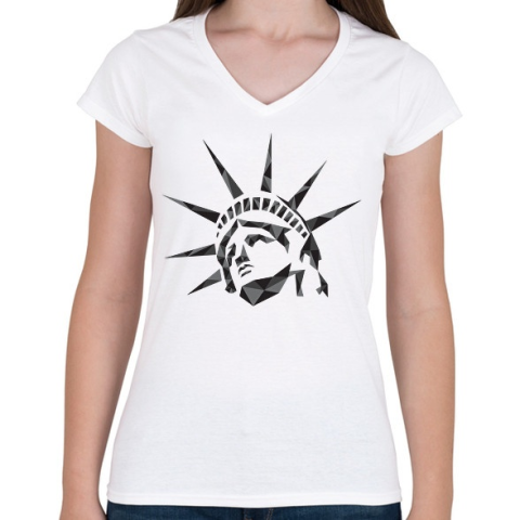 1 kép PRINTFASHION Geometrikus Szabadság szobor - Női V-nyakú póló - Fehér