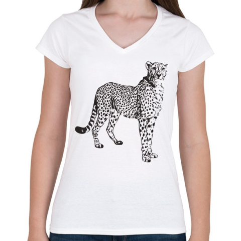 1 kép PRINTFASHION Gepárd - Női V-nyakú póló - Fehér