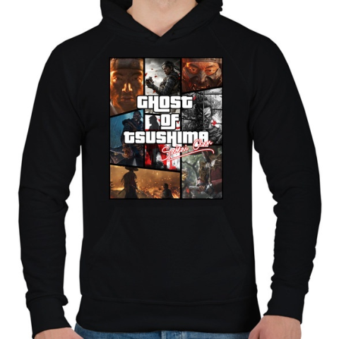 1 kép PRINTFASHION Ghost of Tsushima montázs - Férfi kapucnis pulóver - Fekete