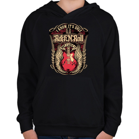 1 kép PRINTFASHION Gitár - Gyerek kapucnis pulóver - Fekete