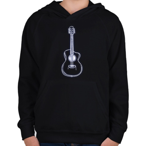 1 kép PRINTFASHION Gitár - Gyerek kapucnis pulóver - Fekete