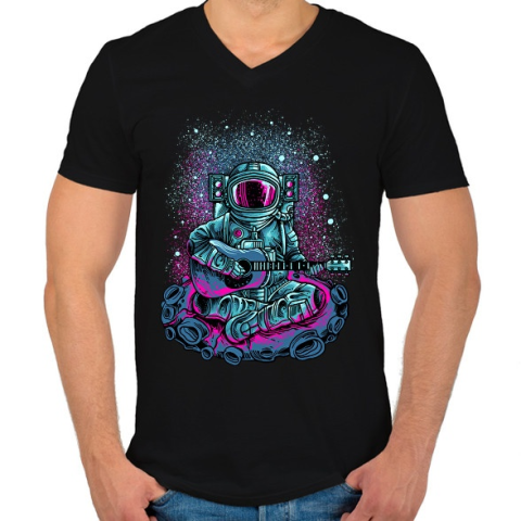 1 kép PRINTFASHION Gitáros asztronauta - Férfi V-nyakú póló - Fekete