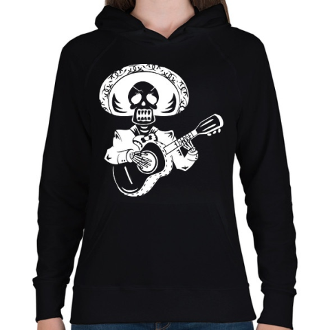 1 kép PRINTFASHION Gitáros csontváz - Női kapucnis pulóver - Fekete