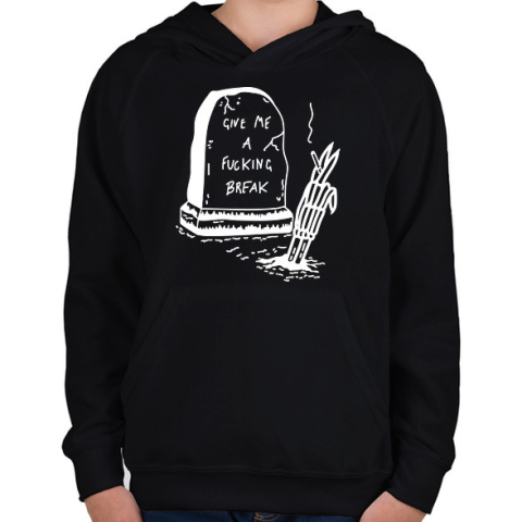 1 kép PRINTFASHION Give me a fucking break - Gyerek kapucnis pulóver - Fekete