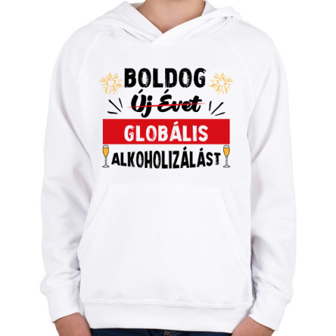1 kép PRINTFASHION Globális alkoholizálás - Gyerek kapucnis pulóver - Fehér